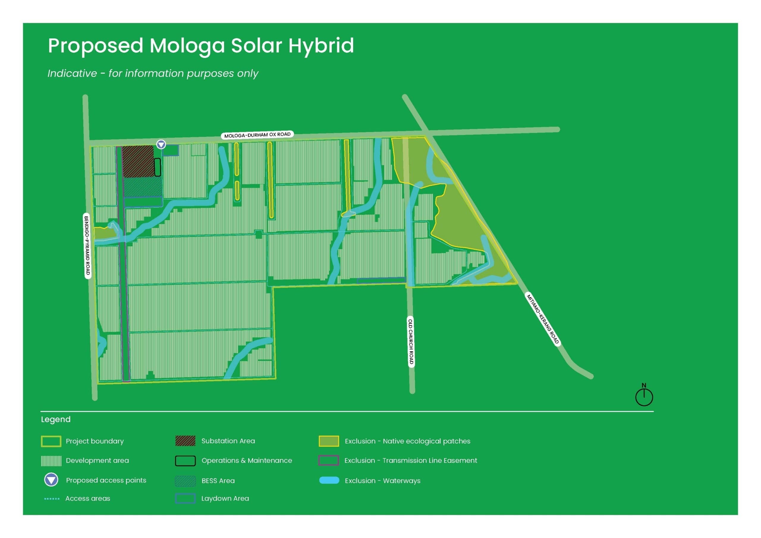 The proposed Mologa Solar Hybrid Project is currently undertaking technical development assessments required in preparation to lodge a Planning Application. The consent authority for the proposed project is the Victorian Department of Transport and Planning (DTP).